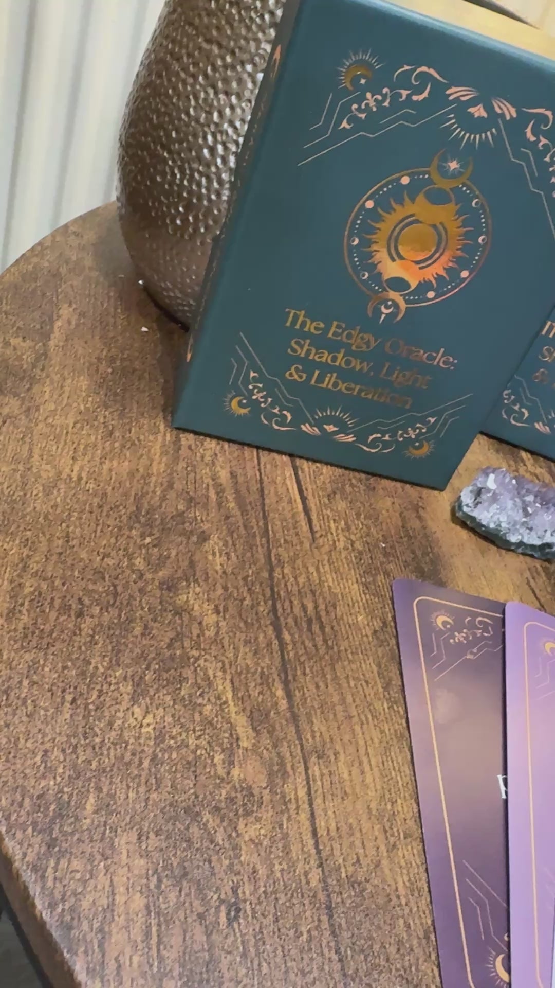 From the moment it is held, The Edgy Oracle carries an antique, time-worn feeling. From the gold-foiled box to the artwork, colour palette, and finish, every element is intentionally designed to feel ritual-led and reverent — something to be returned to, not rushed through.